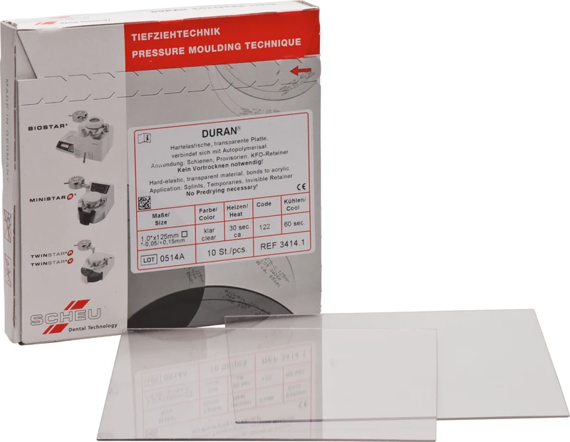 Hartelastische, transparente Folie, verbinden sich mit Autopolymerisat. Kein Vortrocknen notwendig.