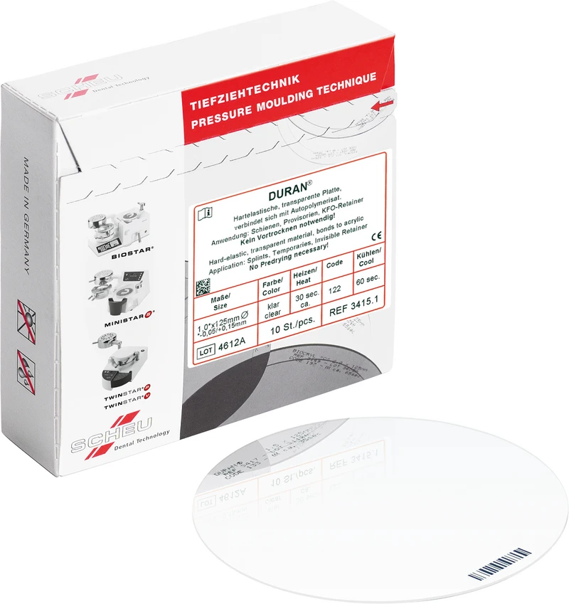 Hartelastische, transparente Folie, verbinden sich mit Autopolymerisat. Kein Vortrocknen notwendig.