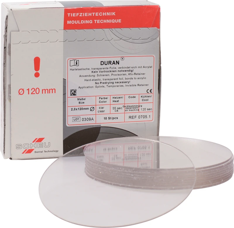 Hartelastische, transparente Folie, verbinden sich mit Autopolymerisat. Kein Vortrocknen notwendig.