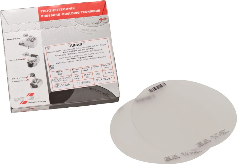 Hartelastische, transparente Folie, verbinden sich mit Autopolymerisat. Kein Vortrocknen notwendig.