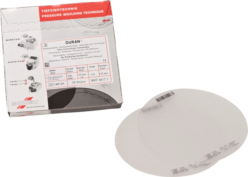 Hartelastische, transparente Folie, verbinden sich mit Autopolymerisat. Kein Vortrocknen notwendig.