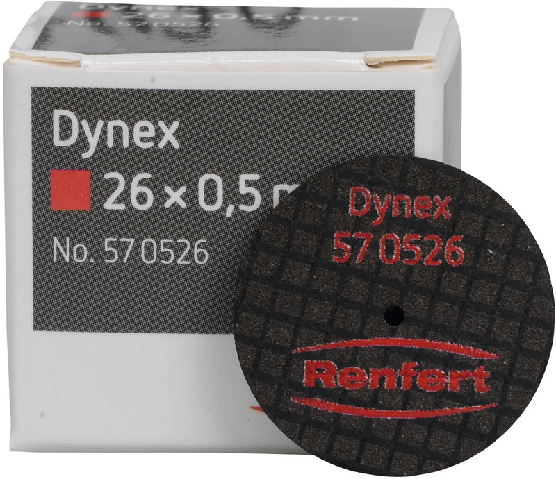 Mit den Dynex Trennscheiben von Renfert wird das Abtrennen und Verschleifen von Gusskanälen sowie das Separieren von Verblendungen jetzt zum Kinderspiel. Die doppelt faserverstärkten Trennscheiben sind nicht nur wesentlich effektiver in der Anwendung, sie sind auch wirtschaftlicher. Sowohl in der Schnittleistung als auch im Eigenverbrauch sind die in drei Größen erhältlichen Scheiben herkömmlichen Trennscheiben deutlich überlegen.