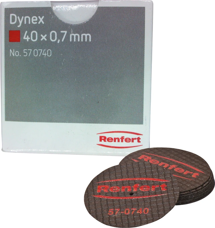 Mit den Dynex Trennscheiben von Renfert wird das Abtrennen und Verschleifen von Gusskanälen sowie das Separieren von Verblendungen jetzt zum Kinderspiel. Die doppelt faserverstärkten Trennscheiben sind nicht nur wesentlich effektiver in der Anwendung, sie sind auch wirtschaftlicher. Sowohl in der Schnittleistung als auch im Eigenverbrauch sind die in drei Größen erhältlichen Scheiben herkömmlichen Trennscheiben deutlich überlegen.
