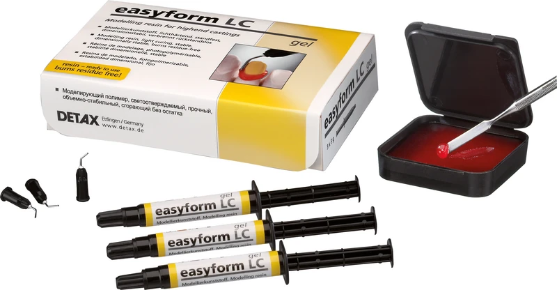 Gebrauchsfertiger Modellierkunststoff, lichthärtend, MM frei. Verbrennt rückstandslos, selbst bei größeren Schichtstärken. Dimensionsstabil, kein Polymerisationsverzug, hohe Endhärte und Stabilität. Kombinierbar mit konventionellem oder lichthärtendem Wachs. Optische Schichtstärkenkontrolle durch leichte Transluzenz.