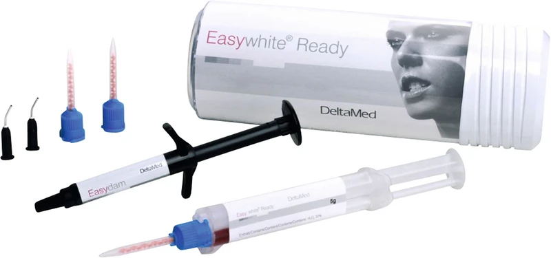 Easywhite® Ready ist ein 2-Komponenten-Material zum Aufhellen verfärbter Zähne. Es kann sowohl ohne als auch mit einer photokatalytischen Aktivierung verwendet werden und ist nur für die Behandlung in der Zahnarztpraxis vorgesehen. Durch das Mischen der beiden Komponenten mittels Automix-Kanüle wird das Bleichmittel aktiviert. Durch eine Bestrahlung mit Licht/Laser kann der Bleichvorgang verbessert werden.
