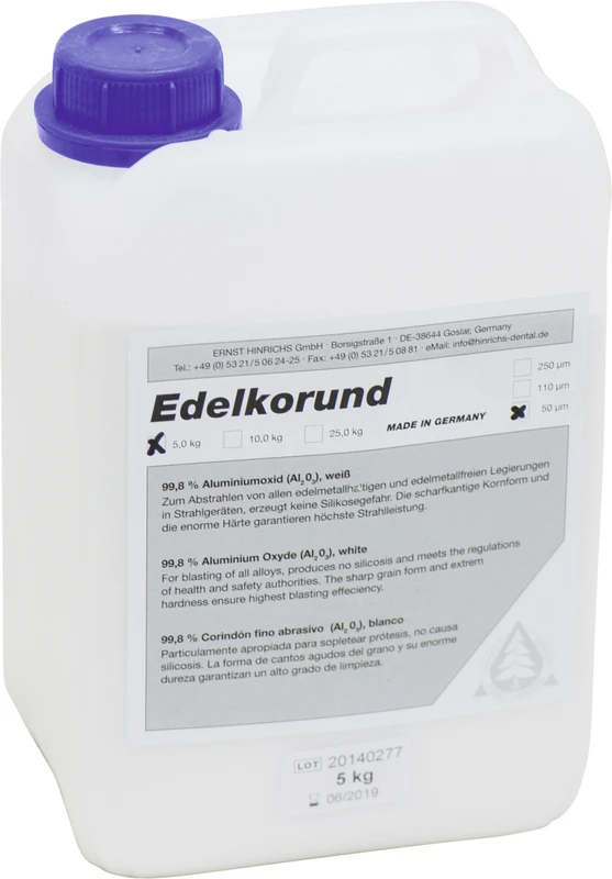 Zum Abstrahlen in Strahlgeräten für alle Legierungen. ERNST HINRICHS Edelkorund erzeugt keine Silikose und entspricht den Vorschriften der Arbeitsschutzbehörden. Die scharfkantige Kornform und die enorme Härte garantieren höchste Strahlleistung.