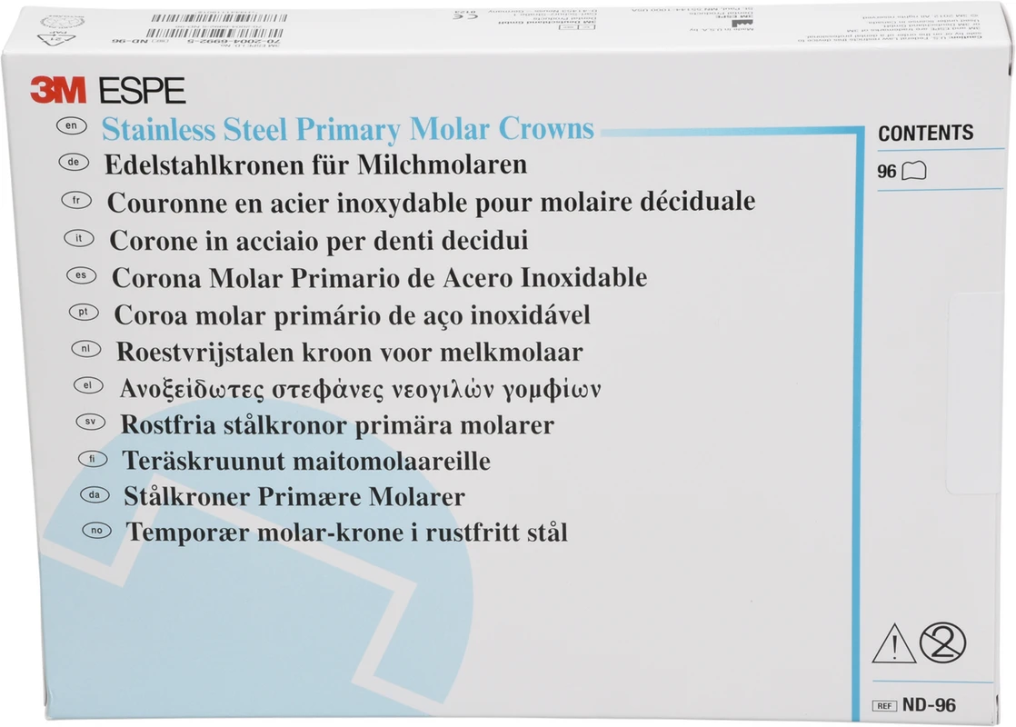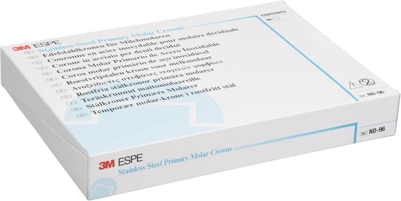 3M Edelstahlkronen für 6-Jahr-Molaren bestehen aus einer hochwertigen, gehärteten Edelstahllegierung und bieten dank des zervikalen Federrands eine hochkomfortable Einpassung mit exaktem Randschluss.