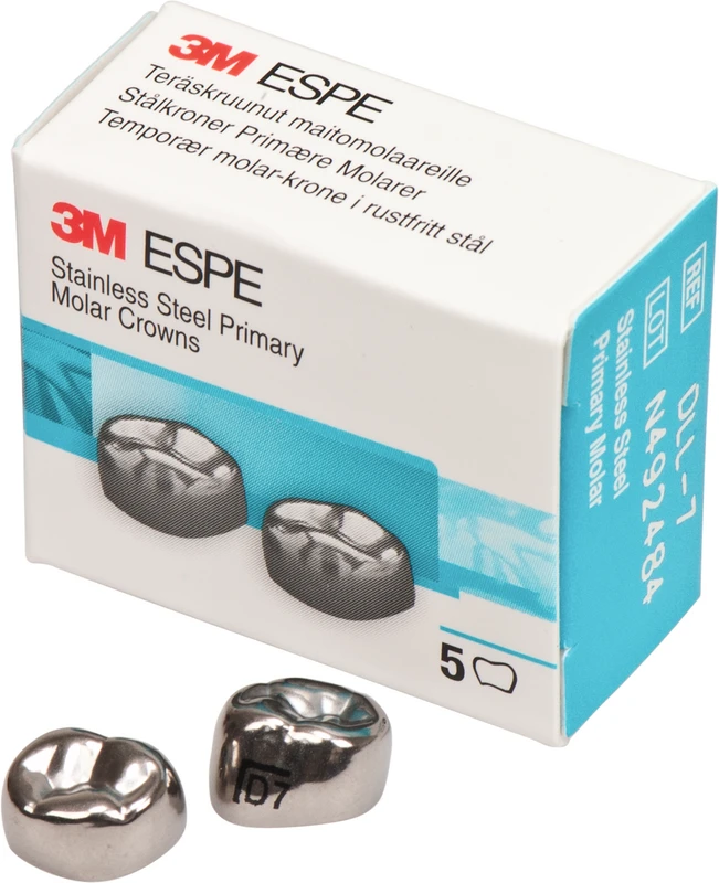 3M Edelstahlkronen für 6-Jahr-Molaren bestehen aus einer hochwertigen, gehärteten Edelstahllegierung und bieten dank des zervikalen Federrands eine hochkomfortable Einpassung mit exaktem Randschluss.
