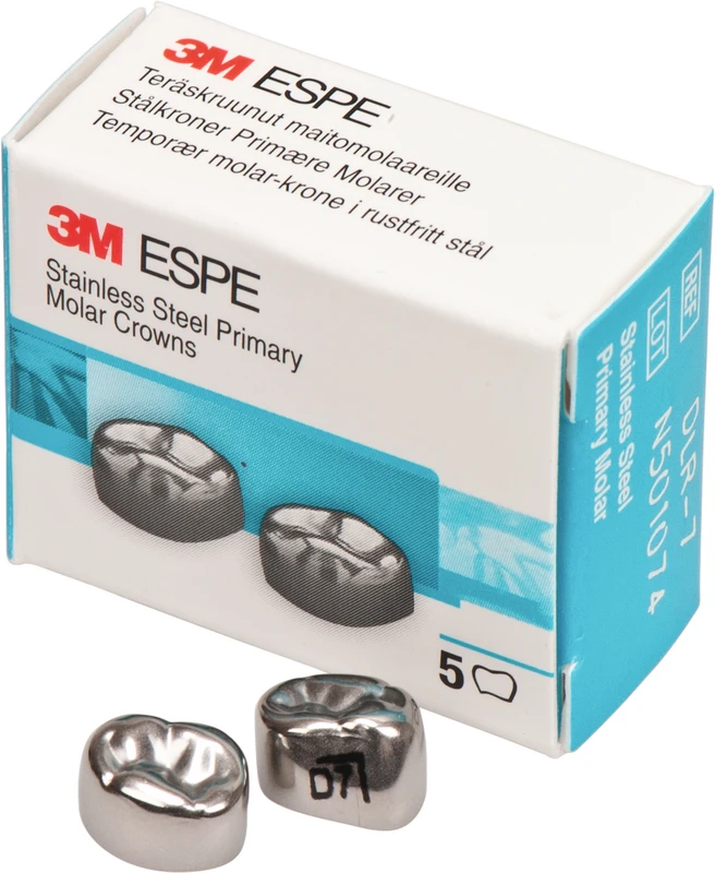 3M Edelstahlkronen für 6-Jahr-Molaren bestehen aus einer hochwertigen, gehärteten Edelstahllegierung und bieten dank des zervikalen Federrands eine hochkomfortable Einpassung mit exaktem Randschluss.
