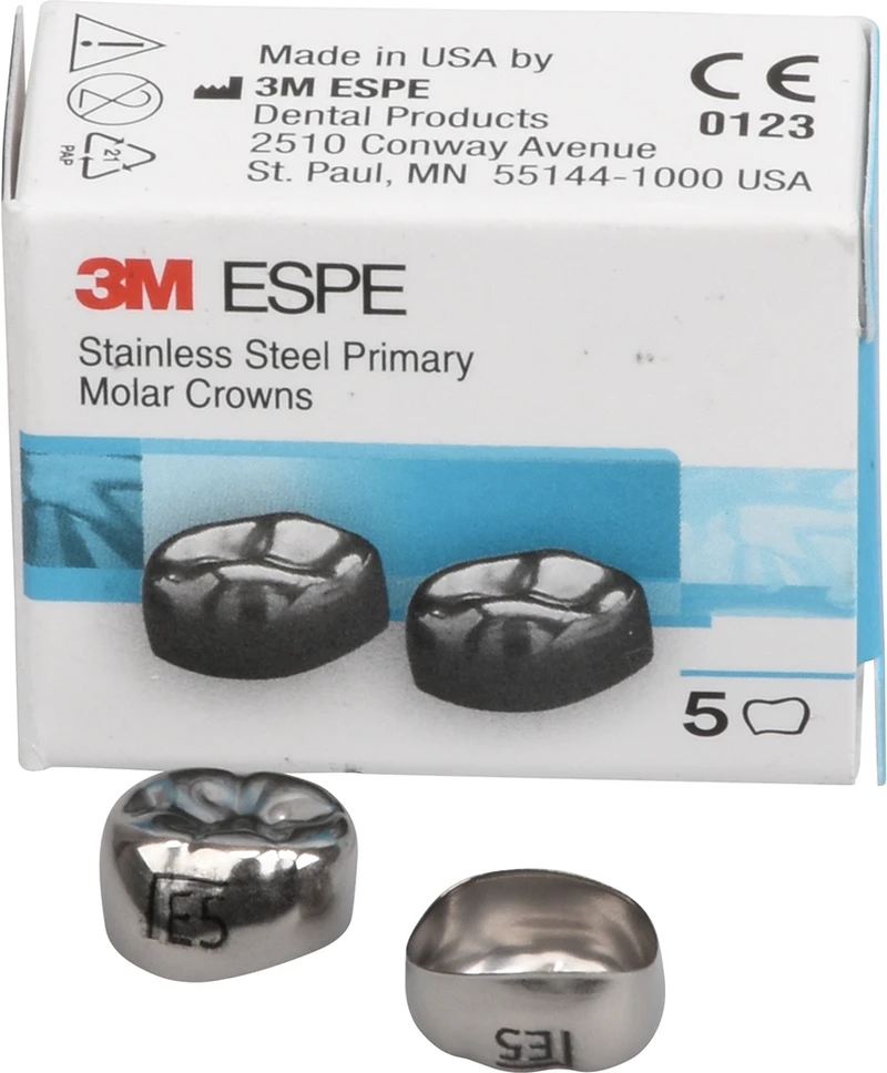3M Edelstahlkronen für 6-Jahr-Molaren bestehen aus einer hochwertigen, gehärteten Edelstahllegierung und bieten dank des zervikalen Federrands eine hochkomfortable Einpassung mit exaktem Randschluss.