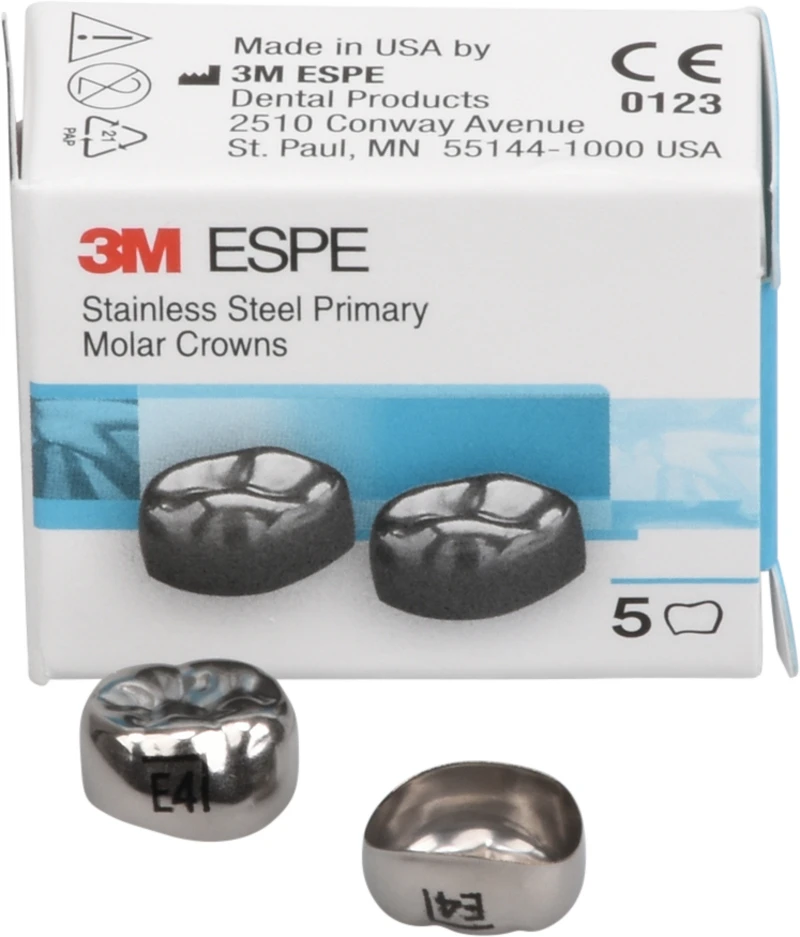 3M Edelstahlkronen für 6-Jahr-Molaren bestehen aus einer hochwertigen, gehärteten Edelstahllegierung und bieten dank des zervikalen Federrands eine hochkomfortable Einpassung mit exaktem Randschluss.