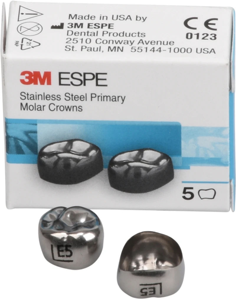 3M Edelstahlkronen für 6-Jahr-Molaren bestehen aus einer hochwertigen, gehärteten Edelstahllegierung und bieten dank des zervikalen Federrands eine hochkomfortable Einpassung mit exaktem Randschluss.