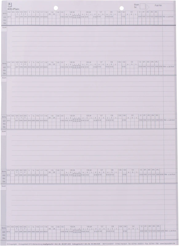 Einlegeblatt KFO-Behandlung Packung 100 Stück kopfgelocht, für DIN A5-Karteikarte
