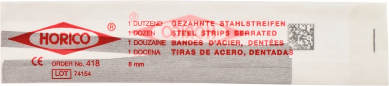Einseitig gezahnte Stahlstreifen Packung 12 Stück 8 mm breit, Stärke 0,05 mm