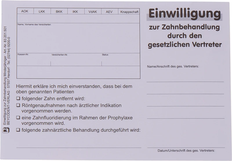 - Einsatz: Einwilligung durch gesetzlichen Vertreter bei Zahnbehandlungen
