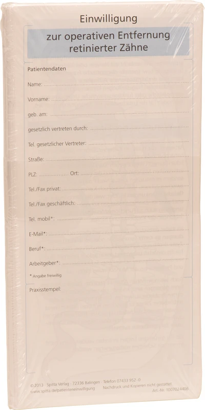 Einwilligungsbögen Packung 50 Stück zur operativen Entfernung von retinierten Zähnen