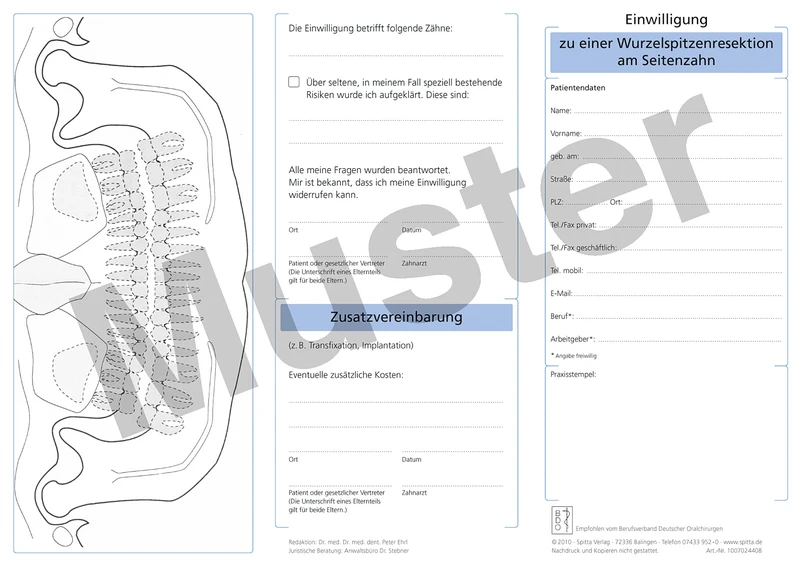 Einwilligungsbogen zur Wurzelspitzenresektion beim Seitenzahn