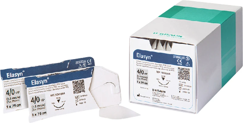 Elasyn® ist in verschiedenen USP (von 3/0 bis 6/0) und Nadelkombinationen aus rostfreiem Edelstahl erhältlich.