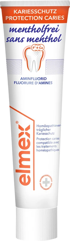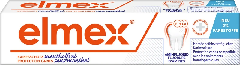 Die elmex® mentholfrei Zahnpasta wurde speziell für die Bedürfnisse von Patienten entwickelt, die homöopathisch behandelt werden oder allergisch auf Menthol reagieren. Schützt effektiv vor Karies und stärkt die Zähne.