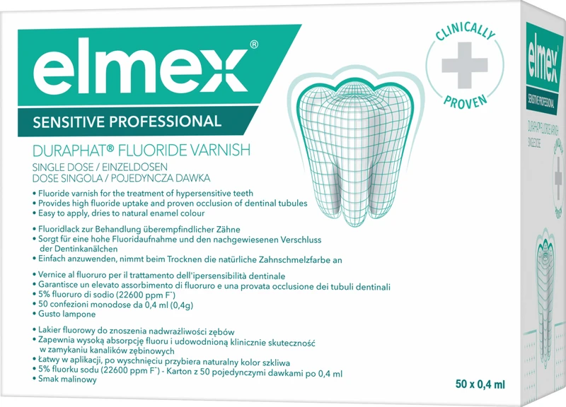 elmex® SENSITIVE PROFESSIONAL Duraphat ist die bewährte Dentalsuspension zur Behandlung von überempfindlichen Zahnhälsen. Die Anwendung erfolgt in praktisch und hygienischen Einzeldosen mit Pinsel.