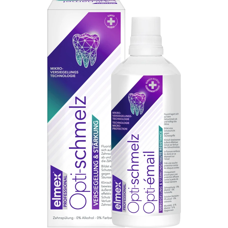 elmex® ZAHNSCHMELZSCHUTZ PROFESSIONAL Zahnspülung mit der neuartigen Wirkstoffkombination Zinnchlorid & Aminfluorid führt zu der Bildung einer zinnreichen Schicht auf der Zahnoberfläche. Diese zinnreiche Schicht schützt den Zahn bei erosiven Säureangriffen. Das Zinn lagert sich in den angegriffenen Zahnschmelz ein und macht ihn resistenter gegen erosive Säuren. So hemmt elmex® ZAHNSCHMELZSCHUTZ PROFESSIONAL Zahnspülung effektiv die Auflösung des Zahnschmelzes. Das enthaltene Aminfluorid schützt außerdem vor Karies.