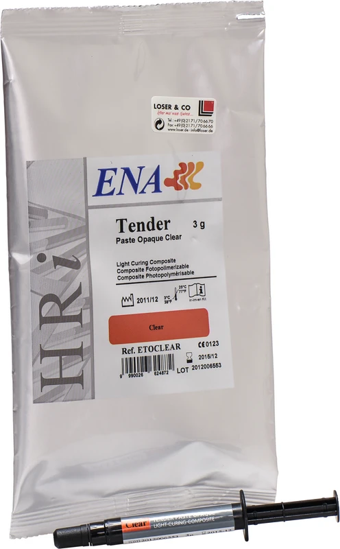 Das perfekte Abbild eines natürlichen Zahnes Mikrohybrid-Komposit für Praxis und Labor mit hochelastischem Dentinkörper, pastösem Opaker und einem Haftvermittler, der ein einzigartiges Bonding garantiert. Tender: superelastische Dentinmassen HRi mit hochresistentem Schmelz Das perfekte Team! Besser als Keramik
