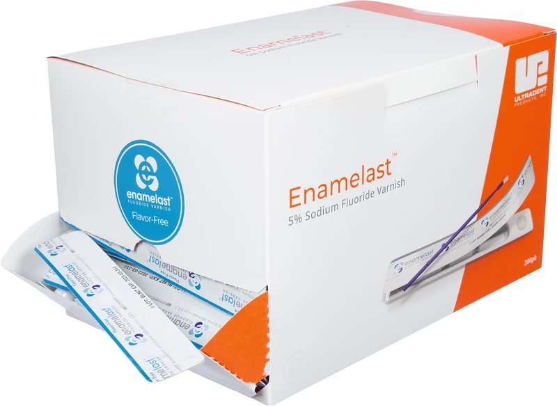 Aromatisierter, mit Xylitol gesüßter 5 %iger Natriumfluoridlack mit natürlichen Harzen als Träger. Seine einzigartige Formel sorgt für eine bessere Haftung, was eine hervorragende Fluoridabgabe und -aufnahme ermöglicht. Enamelast bewirkt einen mechanischen Verschluss der Dentintubuli bei der Behandlung von Zahnhypersensibilität. Die AAPD empfiehlt Fluoridlack für die Anwendung als präventives Hilfsmittel zur Reduzierung des Kariesrisikos.