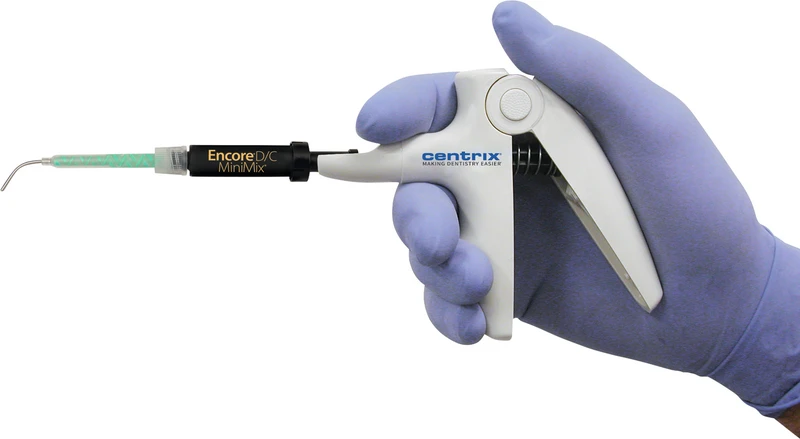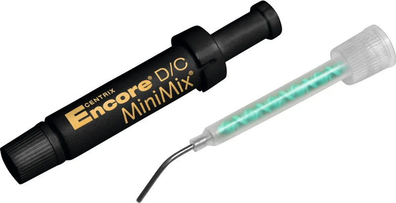 Unser neues Encore® D/C MiniMix® Kit als Einzeldosis enthält 36 Kartuschen. Jede Kartusche verfügt über zwei Mischdüsen und unsere exklusive Kanülenspitze. Unser Produkt ist dualhärtend, für eine schnelle Lichtaktivierung. Darüber hinaus reduziert die geringere Größe und die einfache Verwendung die Behandlungszeit und verringert den Stress beim Patienten.