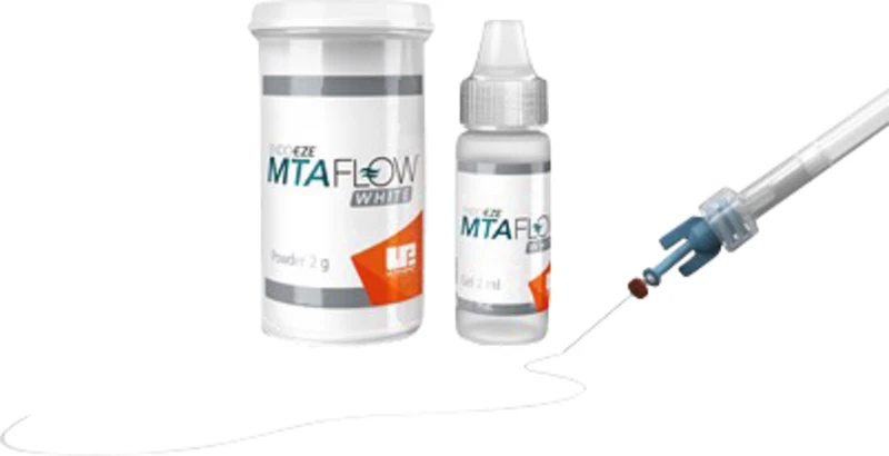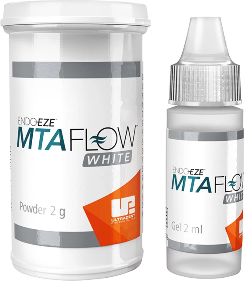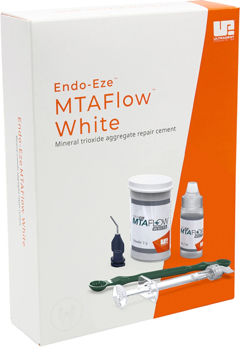 MTAFlow Mineral Trioxid Aggregat Reparaturzement lässt sich schnell und einfach zu einer glatten, geschmeidigen Konsistenz für zahlreiche Anwendungsgebiete anmischen. Eine effektive Behandlung wird durch die präzise Applikation mit Spritzen und Tips von Ultradent Products sichergestellt.