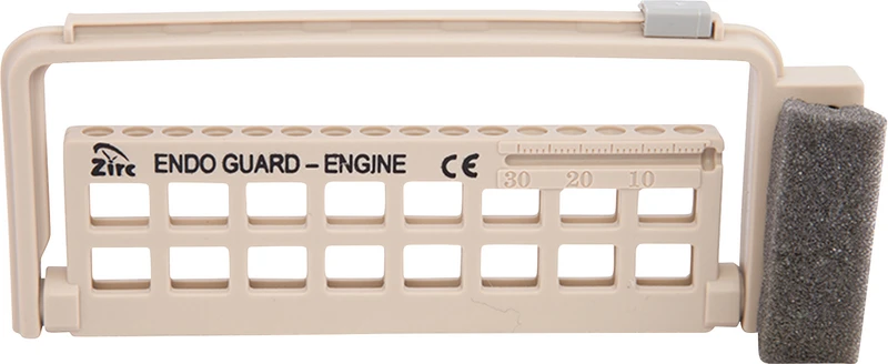 Endo Guards organisieren alle manuellen oder maschinellen Endoinstrumente. Der verschiebbare Slide-Adapter ermöglicht die sichere Dokumentation der Benutzungshäufigkeit der Instrumente. Jeweils integriert ist eine Messlehre und Ablageschwämme. Endo Guards sind autoklavierbar.