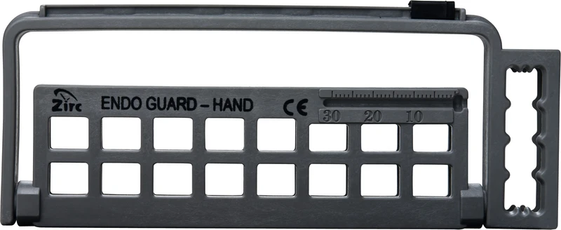 Endo Guards organisieren alle manuellen oder maschinellen Endoinstrumente. Der verschiebbare Slide-Adapter ermöglicht die sichere Dokumentation der Benutzungshäufigkeit der Instrumente. Jeweils integriert ist eine Messlehre und Ablageschwämme. Endo Guards sind autoklavierbar.