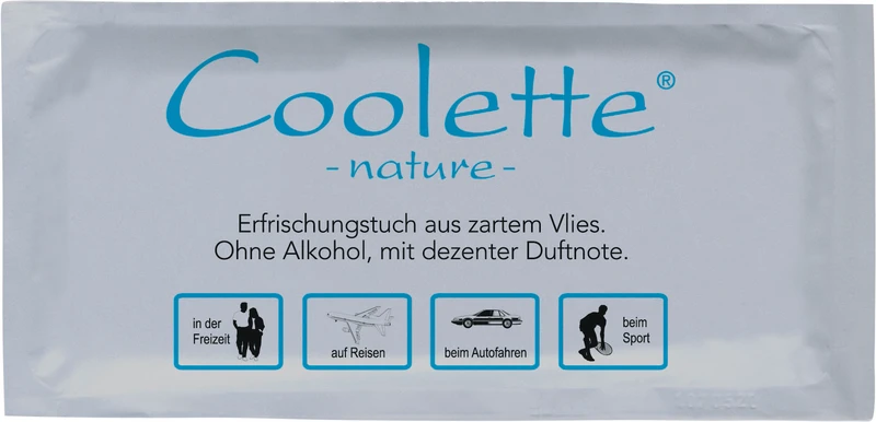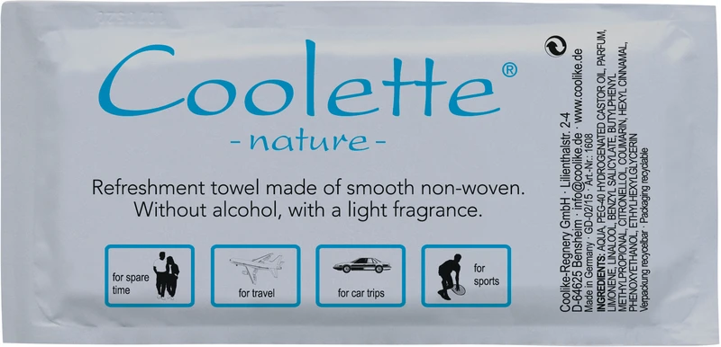 Coolike-Frischeaktivator für heiße Tage. Tuch aus der Packung nehmen, auffalten und kurz durch die Luft wedeln. So wird´s wieder schön kühl. Original Erfrischungstücher aus weicher Baumwolle, ohne Alkohol.