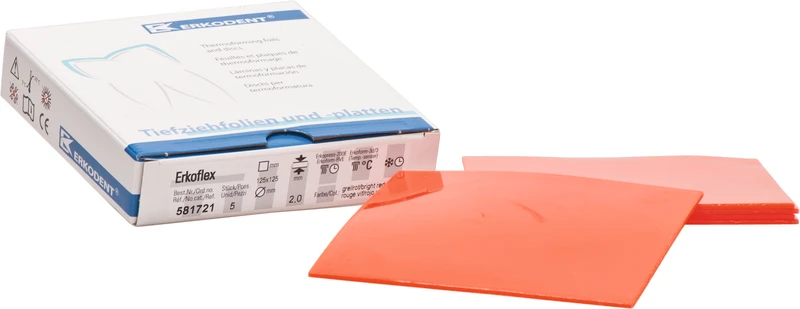Packung 5 Tiefziehfolien Viereck, 125 x 125 mm, Stärke 2 mm, grellrot