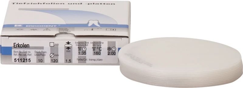 Erkolen ist ein weiches, elastisches Material, rückstandslos verbrennbar. Verbindet sich nicht mit Autopolymerisat. Für Gussformteile, provisorische Kronen und Brücken, Zahnfleischverbände und als Platzhalter für Medikamententräger (z. B. Fluoridierung) aus Erkoflex-Folien. Mit Unterziehfolie für Modellisolierung und Schrumpfausgleich.