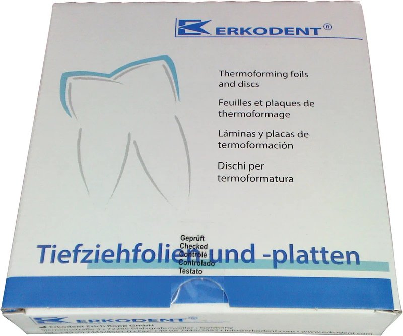 Erkolen ist ein weiches, elastisches Material, rückstandslos verbrennbar. Verbindet sich nicht mit Autopolymerisat. Für Gussformteile, provisorische Kronen und Brücken, Zahnfleischverbände und als Platzhalter für Medikamententräger (z. B. Fluoridierung) aus Erkoflex-Folien. Mit Unterziehfolie für Modellisolierung und Schrumpfausgleich.