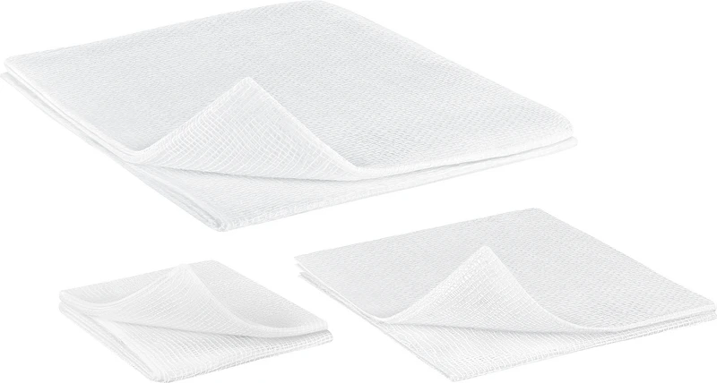 Die klassischen Mullkompressen mit den eingeschlagenen Schnittkanten.Aus Verbandmull EN 14079, 17-fädig, mit eingeschlagenen Schnittkanten (= ES); auch mehrfach aufgeklappt in größeren Formaten verwendbar, ohne dass störende Randfäden auftreten; gute Saugfähigkeit, luftdurchlässig, weich und geschmeidig.