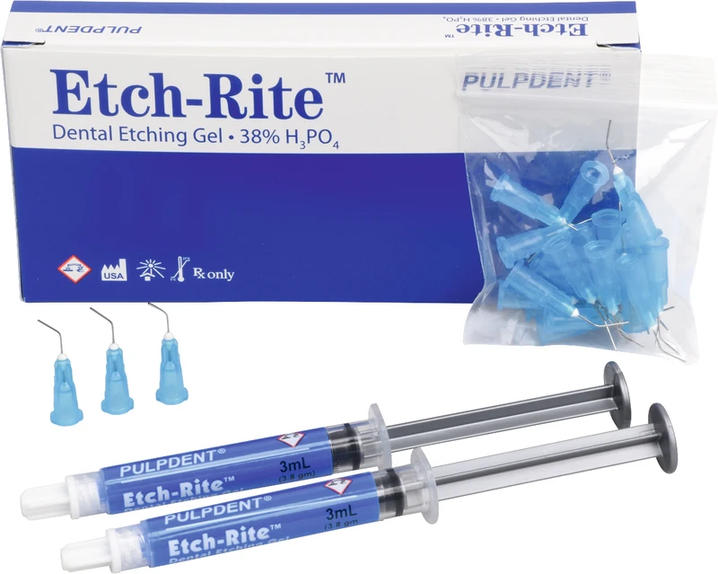 Ätzgel. Enthält Phosphorsäure. Etch-Rite ermöglicht punktgenaues Applizieren durch ideale Viskosität und praktische Nadelansätze.