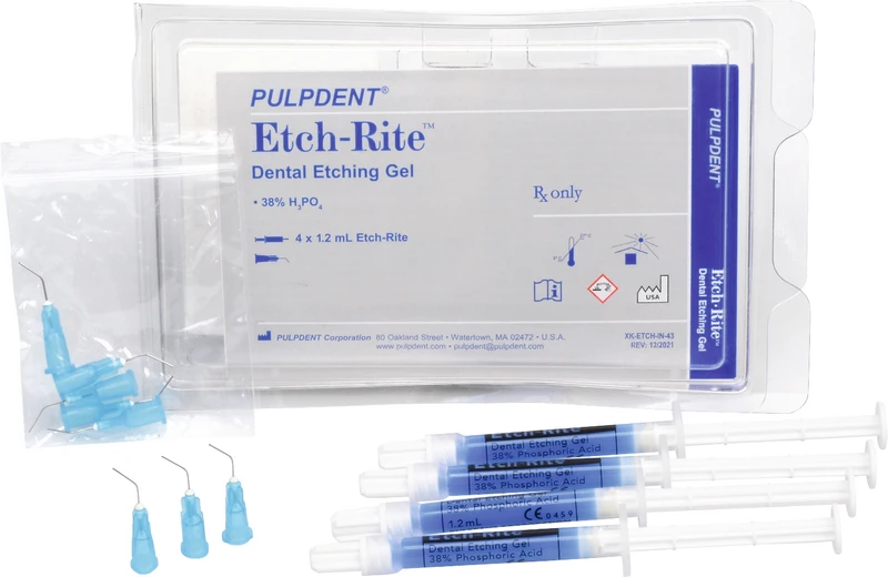 Ätzgel. Enthält Phosphorsäure. Etch-Rite ermöglicht punktgenaues Applizieren durch ideale Viskosität und praktische Nadelansätze.