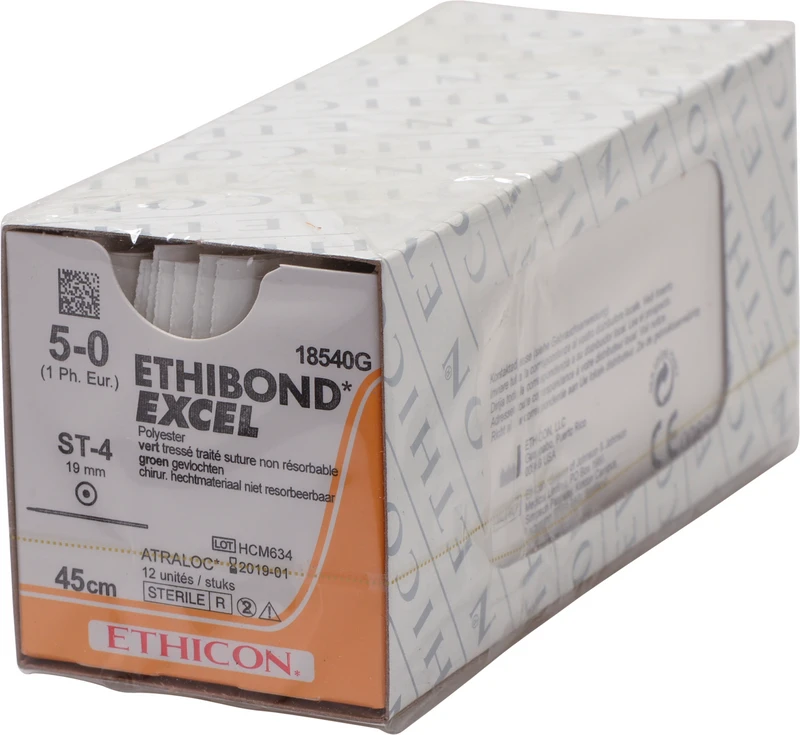 ETHIBOND EXCEL (Polyester beschichtet) ist ein synthetischer, nicht resorbierbarer chirurgischer Faden mit einer polyfilen Struktur, aber mit einer aus Polybutylat bestehenden Ummantelung, die für eine verbesserte Gleitfähigkeit durch das Gewebe verantwortlich ist.