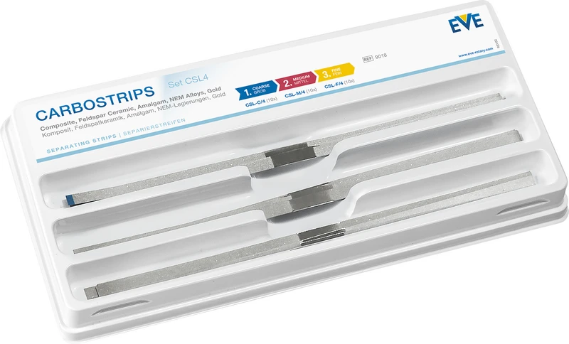 Produktinformationen "EVE CARBOSTRIPS CSL4 Set 30 Stück (10 x blau grob, 10 x rot mittel, 10 x gelb fein)"