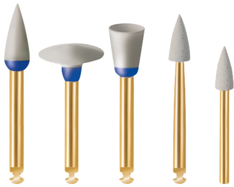 Einstufiges Hochleistungspoliersystem auf allen erhältlichen Kompositen (Nano-, Mikro-, Hybrid-Komposite, Kompomere und Ionomere). Der gewünschte Materialabtrag kann einfach über den Anpressdruck gesteuert werden. Durch den außergwöhnlich hohen Diamantanteil lässt sich selbst auf schwer zu polierenden Kompositmaterialien ein perfekter Hochglanz erzielen. Die lange Standzeit, die Wiederverwendbarkeit (autoklavierbar) und die einfache Handhabung durch den Wegfall mehrerer Polierstufen machen das Produkt zudem äußerst ökonomisch.