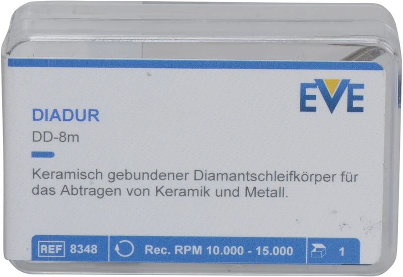 Diamantschleifkörper in keramischer Bindung für die Bearbeitung von Keramiken und Metallen. Ausdünnen der Kronenränder, ausarbeiten der Konturen. Verschleifen der Stege. Außergewöhnlich hohe Kantenstabilität. Sehr hohe Abtragsleistung, hohe Wärmetoleranz.