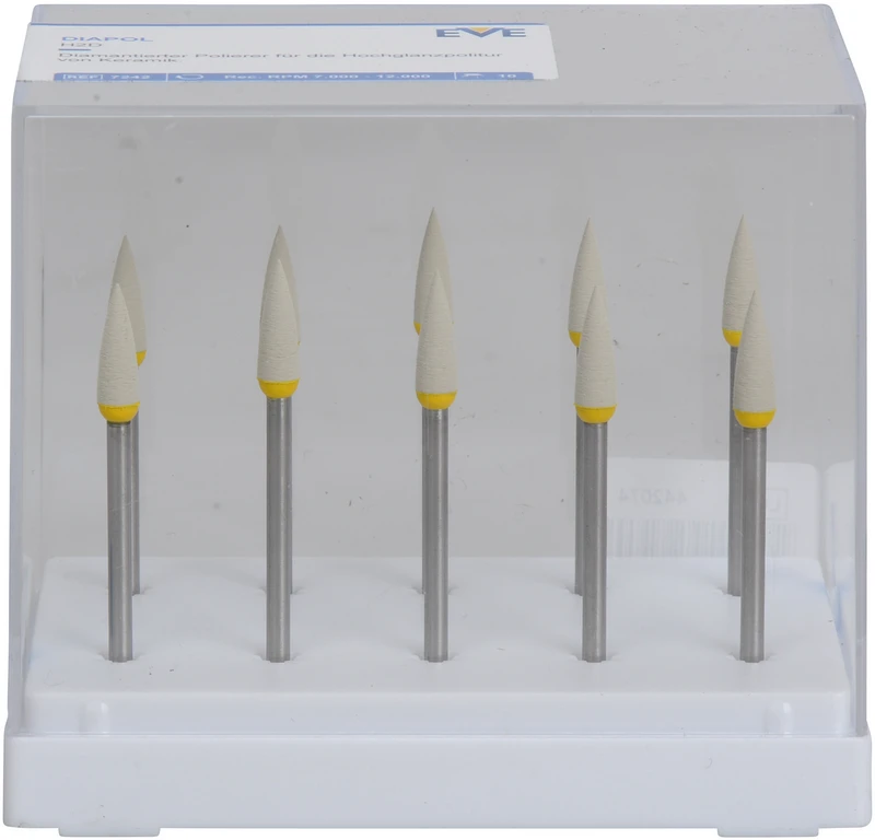 Verschleißfeste, leistungsstarke, mit reiner Diamantkörnung durchsetzte Polierer für brilliante Ergebnisse in Sekundenschnelle. Mit EVE Diamantpolierern erledigen Sie Korrekturen auf Keramik mit minimalem Aufwand. Abtragen, Glätten und Hochglanzpolieren.
