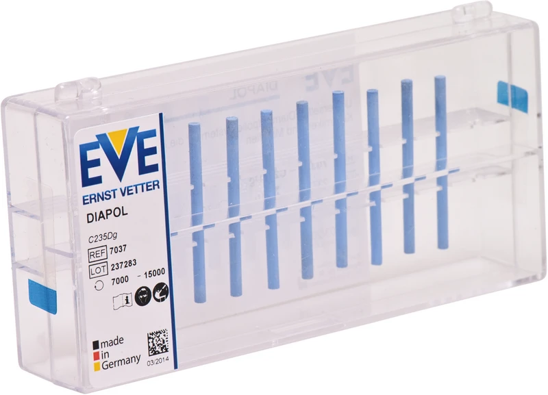 Verschleißfeste, leistungsstarke, mit reiner Diamantkörnung durchsetzte Polierer für brilliante Ergebnisse in Sekundenschnelle. Mit EVE Diamantpolierern erledigen Sie Korrekturen auf Keramik mit minimalem Aufwand. Abtragen, Glätten und Hochglanzpolieren.
