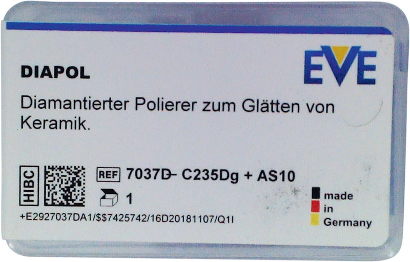 Verschleißfeste, leistungsstarke, mit reiner Diamantkörnung durchsetzte Polierer für brilliante Ergebnisse in Sekundenschnelle. Mit EVE Diamantpolierern erledigen Sie Korrekturen auf Keramik mit minimalem Aufwand. Abtragen, Glätten und Hochglanzpolieren.