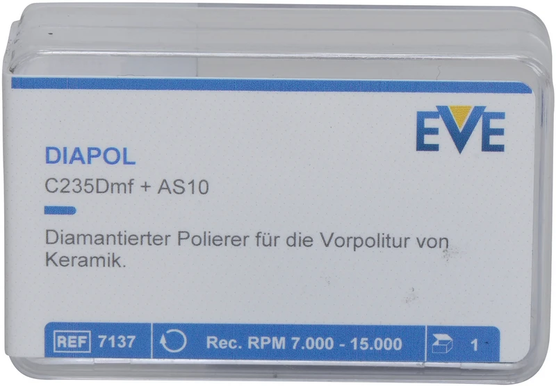 Verschleißfeste, leistungsstarke, mit reiner Diamantkörnung durchsetzte Polierer für brilliante Ergebnisse in Sekundenschnelle. Mit EVE Diamantpolierern erledigen Sie Korrekturen auf Keramik mit minimalem Aufwand. Abtragen, Glätten und Hochglanzpolieren.