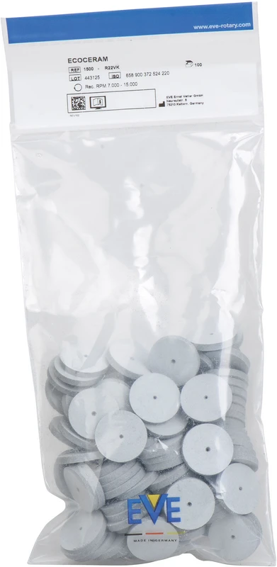 Produktinformationen "EVE ECOCERAM Packung 100 Stück unmontiert, hellgrau grob, Figur Rad, 22 x 3 mm"