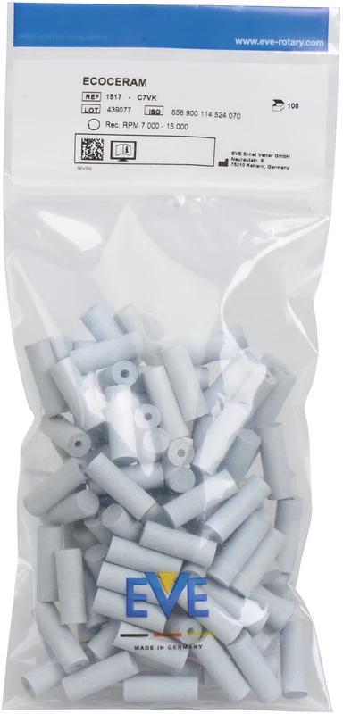 Produktinformationen "EVE ECOCERAM Packung 100 Stück unmontiert, hellgrau grob, Figur Zylinder, 7 x 20 mm"