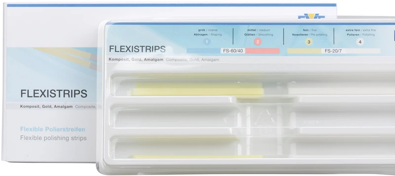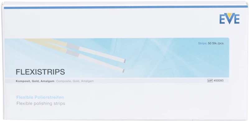 EVE FLEXISTRIPS, Aluminiumoxid. Flexible Finier- und Polierstreifen für Komposite, Kompomere, Glasionomere, Amalgam und für die Reinigung der Approximalräume.