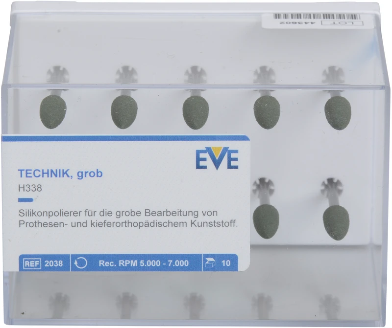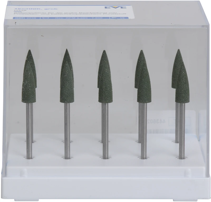 EVE TECHNIK Packung 10 Stück grün grob, HP, Figur Spitze, 5,5 x 16 mm
